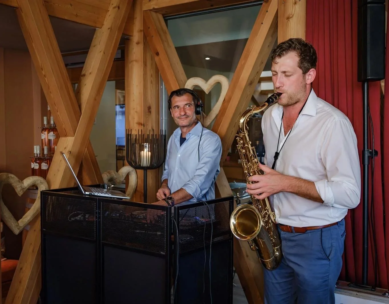 Viele Paare entscheiden sich zur Trauung für eine emotionale Kombination aus Saxophon und Klavier. Beim Sektempfang sorgt diese Besetzung für eine stilvolle Atmosphäre. Zum Dinner ist mein Quartett besonders beliebt – wir spielen äußerst hochwertige Interpretationen von vielen bekannten Songs: Während des Essens dezent im Hintergrund und zwischen den Gängen auflockernden Song-Versionen als „Wachmacher“. Anschließend heizen wir den Gästen schonmal richtig ein. So kommt schon beim Abendessen Party-Stimmg auf und übergeben dann nahtlos an DJ & Sax.